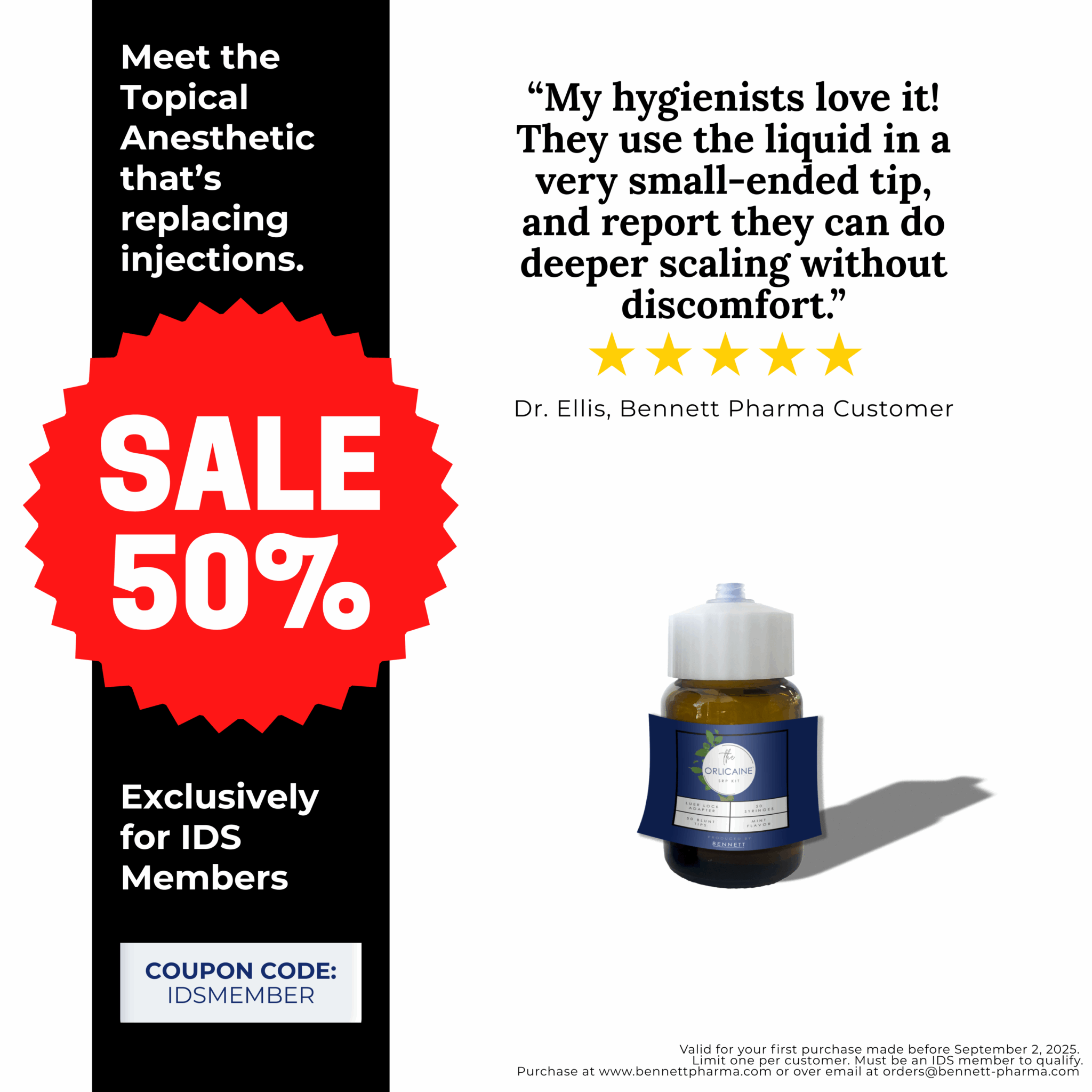 The Bennett Pharma Medical team and current customers purchase Orlicaine Gel for Pediatric dentistry, anesthetizing the palate, implant uncovering procedures, frenectomies, and more. Current Bennett Pharma customers purchase Orlicaine Liquid for SRP, implant procedures, and more. Current Bennett Pharma customers purchase Orlicaine Spray for post implant procedure pain relief, pain relief associated with dental or medical procedures within the mouth, sore throats, oral sores, and more.